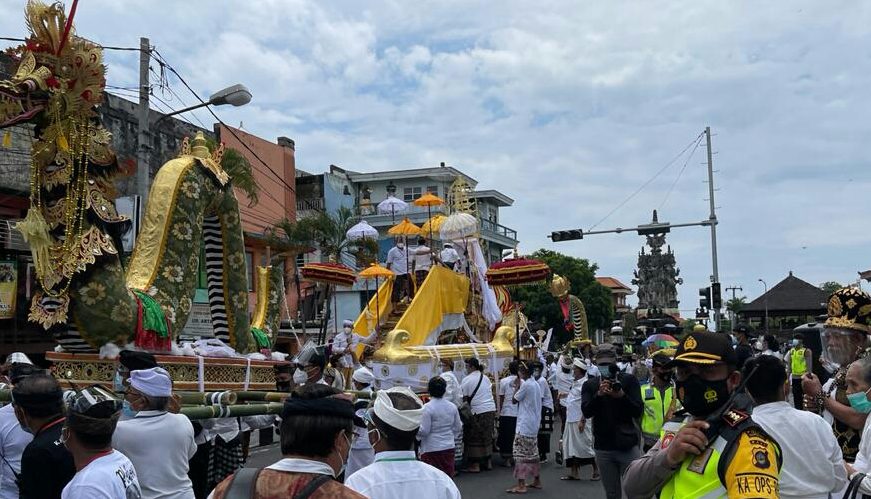 Sebelum upacara berlangsung, seluruh keluarga dan pengayah di Puri Agung Klungkung mendapat pemeriksaan tes cepat antigen. Hanya mereka yang dinyatakan negatif yang dibolehkan mengikuti upacara, dan mengusung iring-iringan bade dan Naga Banda menuju Setra Tegal Linggah.