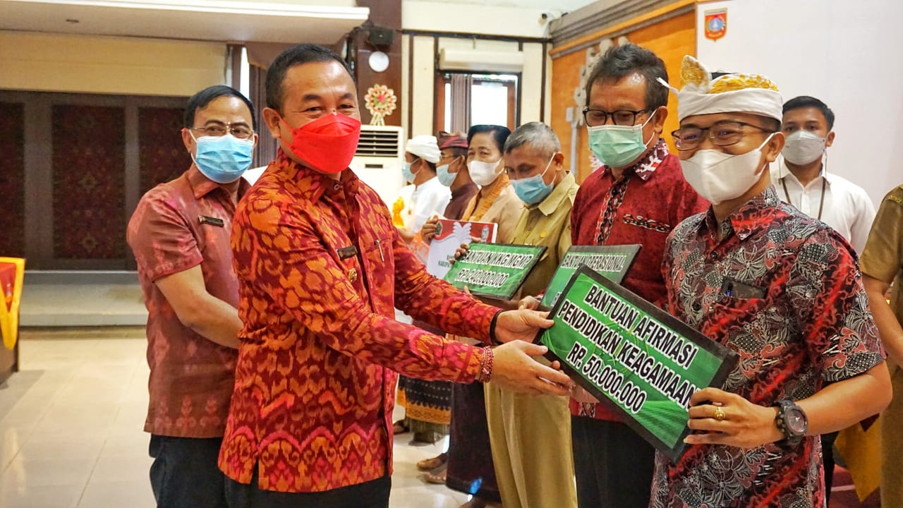 KARANGASEM – Untuk menjamin kemakmuran serta memberikan perhatian kepada seluruh umat beragama di Karangasem, Pemkab Karangasem melalui Kementerian Agama menyerahkan bantuan keagamaan.