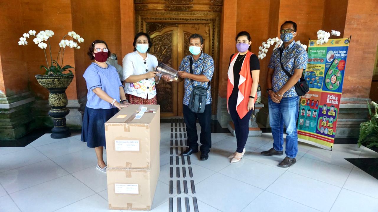 DENPASAR – Pemkot Denpasar kembali menerima bantuan alat pelindung diri (APD) berupa face shield (pelindung wajah) dari CSR perusahaan swasta. Kali ini, bantuan sebanyak 200 pelindung wajah diterima secara simbolis oleh Kadis Kesehatan Kota Denpasar, dr. Luh Putu Sri Armini, Senin (16/11/2020) di Lobi Kantor Wali Kota Denpasar.