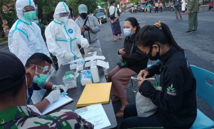 DENPASAR – Puluhan pengunjung Pantai Sanur, Denpasar, Bali diwajibkan mengikuti tes cepat antigen gratis yang telah disediakan sebelum memasuki area pantai.