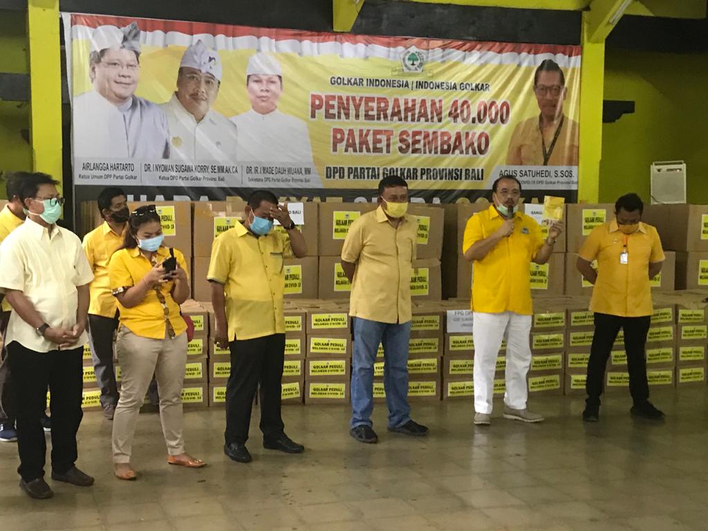 DENPASAR – Partai Golkar menyiapkan rancangan perbaikan ekonomi secara nasional dan lokal menjelang hadirnya kenormalan baru di tengah pandemi Covid-19. Agenda yang ditawarkan kepada Presiden dan para kepala daerah di Indonesia itu bersifat adaptif dan kreatif. “Kita jangan tunggu masalah selesai baru bergerak. Kita menjawab perubahan ini dengan adaptif dan kreativitas,” kata Ketua DPD Partai Golkar Bali, Nyoman Sugawa Korry, saat menyalurkan 40 ribu paket bahan pokok dari Golkar ke seluruh Bali, Jumat (29/5/2020).
