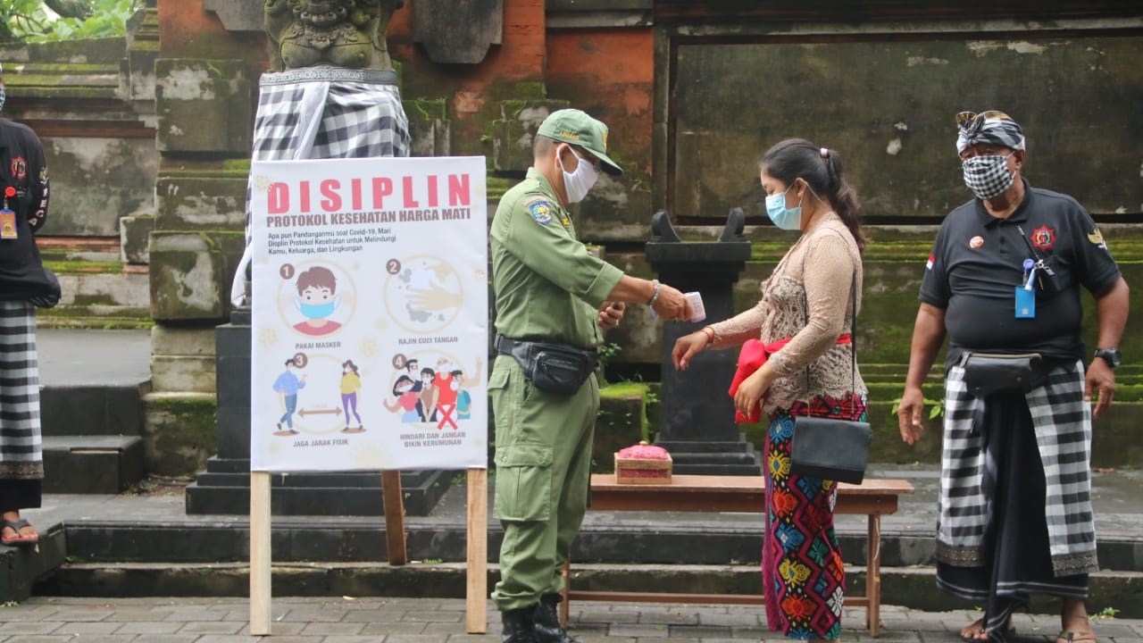 “Tempat sembahyang di areal pura sudah ditandai sehingga pemedek tidak berkerumun. Imbauan prokes dari pengeras suara juga sering digunakan untuk mengingatkan pemedek,” ujarnya.