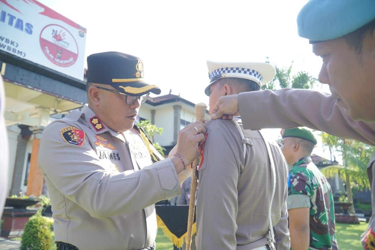 POSMERDEKA.COM, BANGLI – Menjelang akhir tahun, Polres Bangli melaksanakan apel gelar pasukan Operasi Zebra Agung 2025, dipimpin Kapolres AKBP James I.S. Rajagukguk, Senin (17/11/2025). Kegiatan di halaman Polres Bangli itu dihadiri unsur TNI, Dinas Perhubungan, PT Jasa Raharja, serta ratusan personel Polres Bangli yang terlibat operasi. Kapolres menyematkan pita warna biru sebagai tanda dimulainya Operasi Zebra Agung, yang berlangsung selama 17 s.d. 30 November 2025 serentak di seluruh Indonesia.