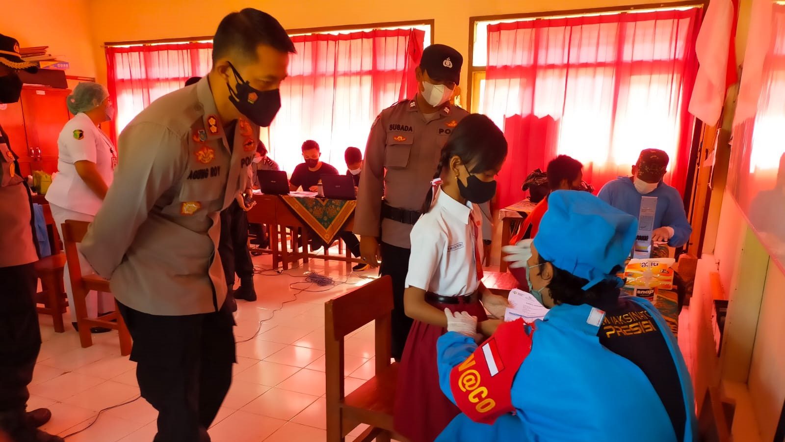 Kapolres Bangli, AKBP I Dewa Agung Roy Marantika, didampingi Wakapolres Kompol I Wayan Suka saat meninjau vaksinasi mengatakan, selain melayani masyarakat umum, Gerai Vaksin Presisi juga membuka layanan anak usia 6-11 tahun yang belum mendapat vaksinasi tahap I dan II.