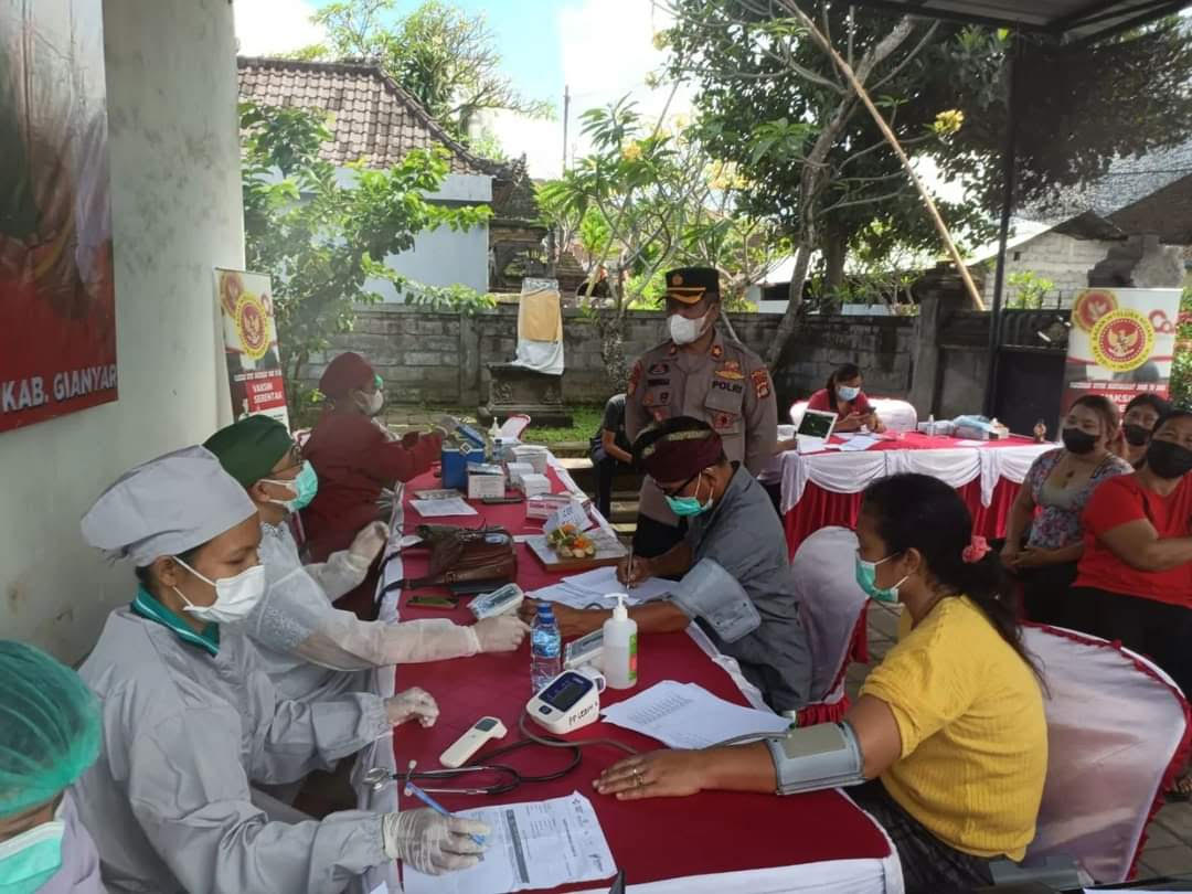 Pengamanan ini guna memberi kelancaran pelaksanaan vaksinasi, sekaligus mencegah kerumunan warga yang hendak divaksin. Petugas Vaksinator dari Puskesmas Gianyar 1 melayani vaksinasi untuk masyarakat umum, baik dosis 1, 2 dan 3 (booster).