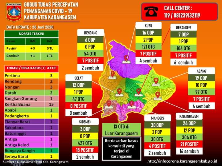‘’Kelimanya merupakan kasus transmisi lokal,’’ jelas Putra Partama dari Dinas Kesehatan Kabupaten Karangasem, Putra Partama, yang juga selaku Koordinator Satuan Tugas Bidang Kesehatan.