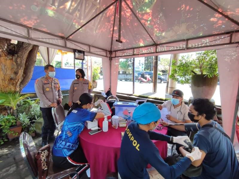 Sesuai standar prosedur operasi, sebelum vaksinasi, Tim Vaksinator Polres Klungkung melakukan skrining lebih dahulu dengan mengecek suhu tubuh, cek tensi dan kesehatan lainnya. Bila dinyatakan sehat dan layak, baru divaksinasi. baw