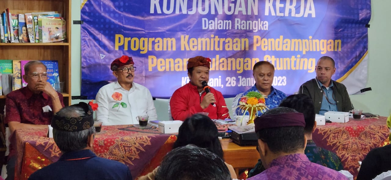 Kunjungan dalam rangka Program Kemitraan Pendampingan Penanggulangan Stunting di Kabupaten Bangli ini dipusatkan di kantor Desa Selulung, Kintamani. Rombongan diterima Bupati Bangli, Sang Nyoman Sedana Arta, didampingi Wakil Bupati I Wayan Diar yang juga Ketua Tim Percepatan Penurunan Stunting (TPPS) Kabupaten Bangli.