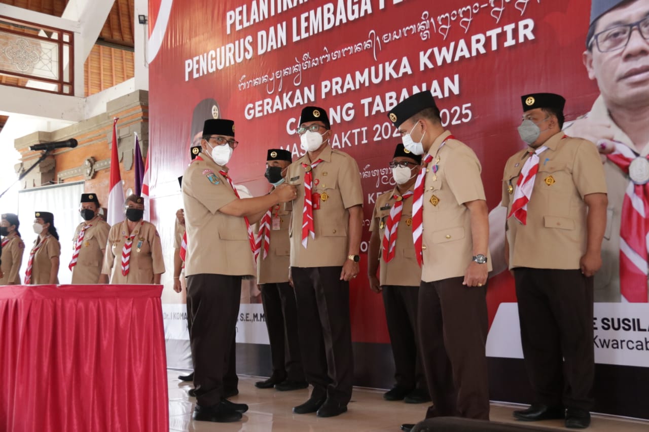 TABANAN – Tantangan dan permasalahan generasi muda semakin kompleks, sehingga peran serta semua pihak dibutuhkan dalam mengatasi berbagai kendala. “Salah satunya adalah gerakan pramuka,” ungkap Bupati Tabanan, I Komang Gede Sanjaya, saat acara Pelantikan dan Pengukuhan Majelis Pembimbing Cabang Tabanan, Jumat (26/11/2021).