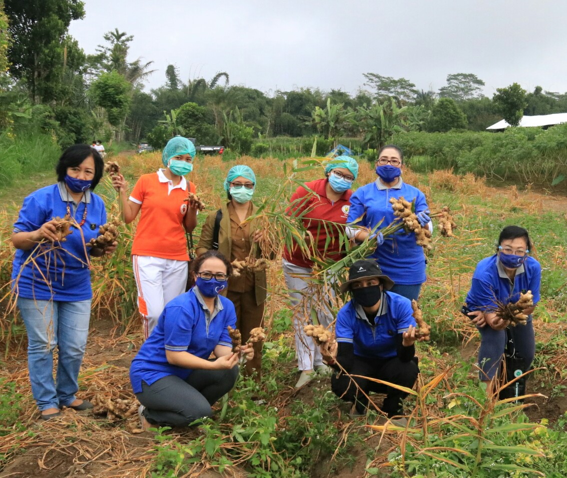 BANGLI – Ketua Badan Kerjasama Organisasi Wanita (BKOW) Provinsi Bali Ny. Putri Hariyani Sukawati beserta para pengurus dan anggota melakukan kunjungan kerja ke salah satu tempat budidaya jahe gajah, di Banjar Linjong , Desa Tiga, Kecamatan Susut, Bangli, Senin (6/7).
