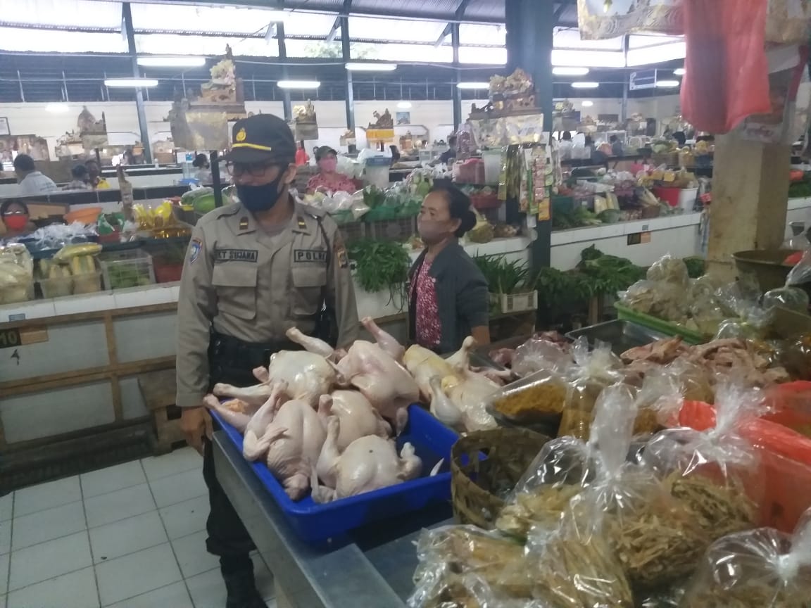 Seperti di Kelurahan Panjer, Denpasar Selatan menggelar Pemantauan Protokol Kesehatan (Prokes) menyasar Pasar Nyanggelan.