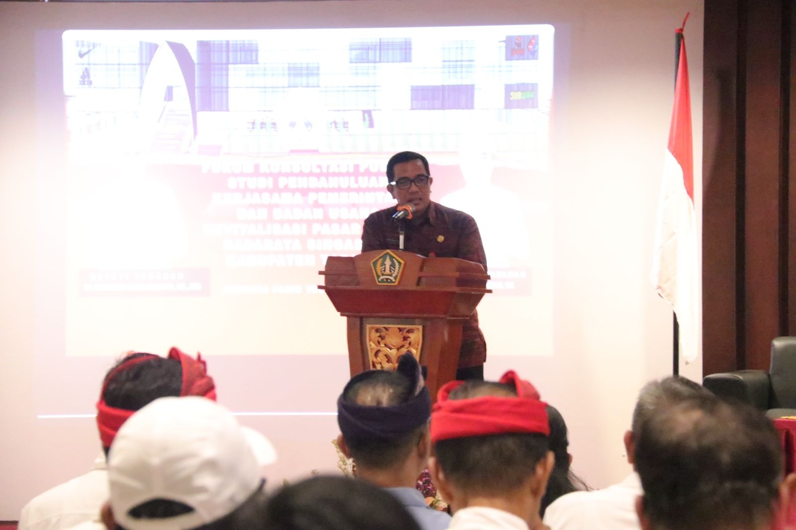 Dia juga menyebutkan bahwa konsultasi publik merupakan lanjutan dari penyusunan dokumen studi pendahuluan KPBU Revitalisasi Pasar Induk Gadarata Singasana Tabanan. Sebelumnya juga telah melakukan tahap survei lokasi, survei ke pedagang dan pemangku kepentingan, serta FGD antara Pemkab Tabanan, Bappenas, dan pihak terkait lainnya. Revitalisasi tidak hanya menyasar perbaikan fisik, juga perbaikan manajemen dan modal.