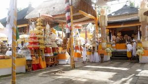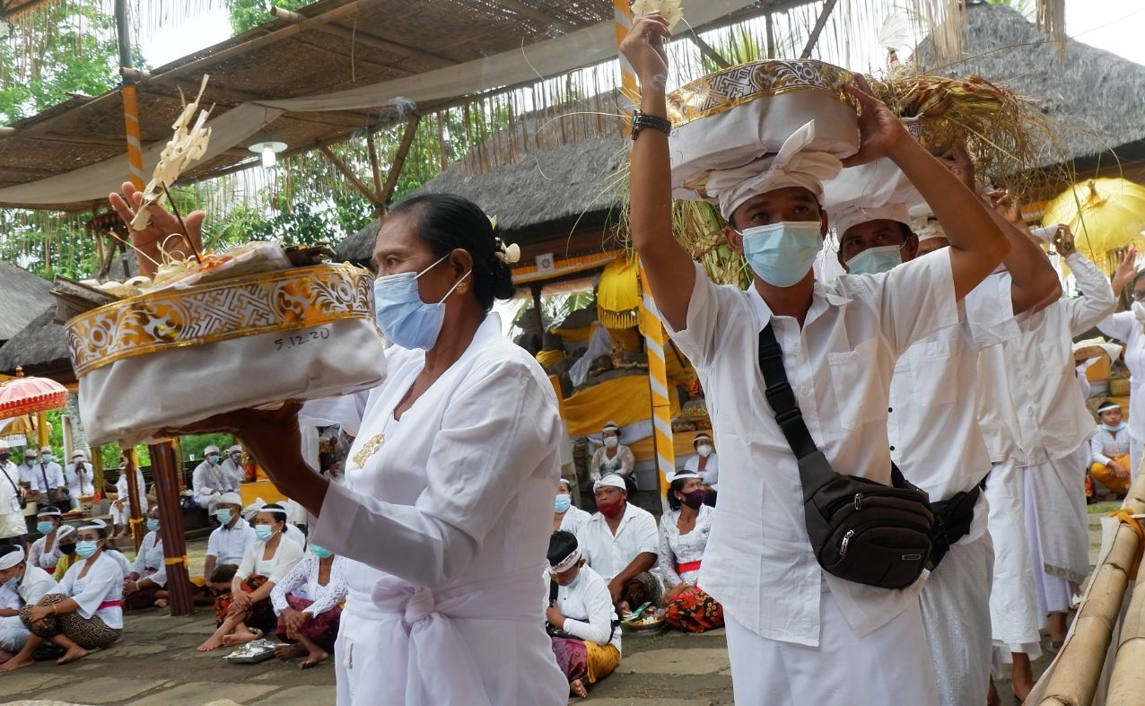 Para pengayah maupun pemedek diatur secara bergiliran guna mengurangi kerumanan warga. Semua itu untuk kelancaran upacara serta yang tidak kalah pentingnya, mencegah terjadinya penularan Covid-19.
