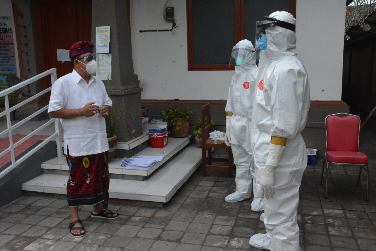 Pelaksanaan swab test sempat ditinjau Sekretaris Daerah (Sekda) Kota Denpasar, AAN Rai Iswara, didampingi Kepala Dinas Kesehatan Kota Denpasar, dr. Luh Putu Sri Armini serta Kepala Bagian Humas dan Protokol Setda Kota Denpasar, Dewa Gede Rai.