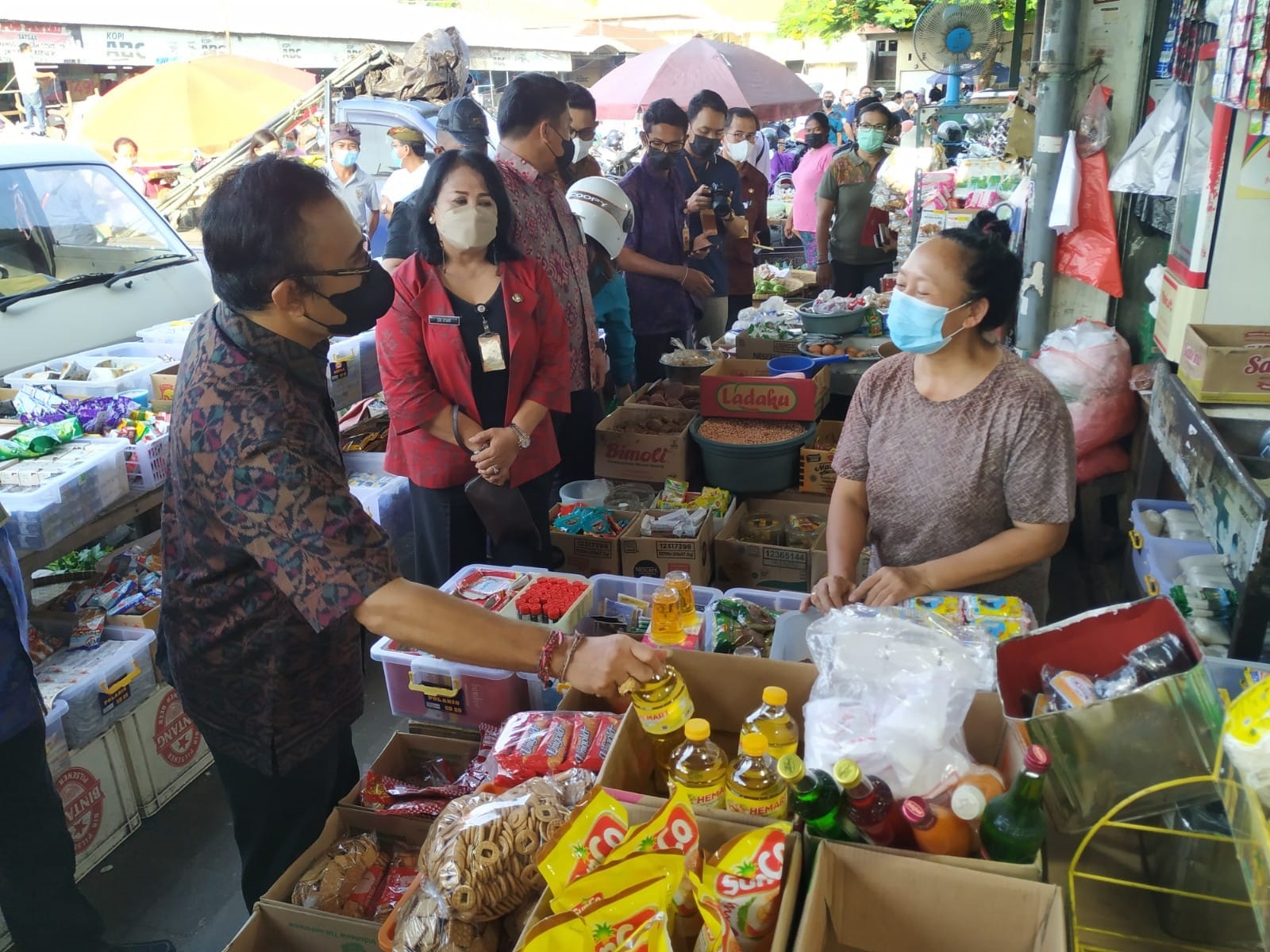 “Untuk harga minyak goreng curah di tingkat distributor Rp14.000 per liter, Rp15.500 per kg. Dan dari hasil pemantauan di beberapa pasar tradisional, harga rata-rata minyak goreng kemasan Rp25.000 per liter,” ujar Sri Utari, Jumat (8/4/2022) di sela-sela mendampingi Wali Kota Denpasar, I Gusti Ngurah Jaya Negara, memantau harga barang kebutuhan pokok (bapok) di Pasar Kreneng.