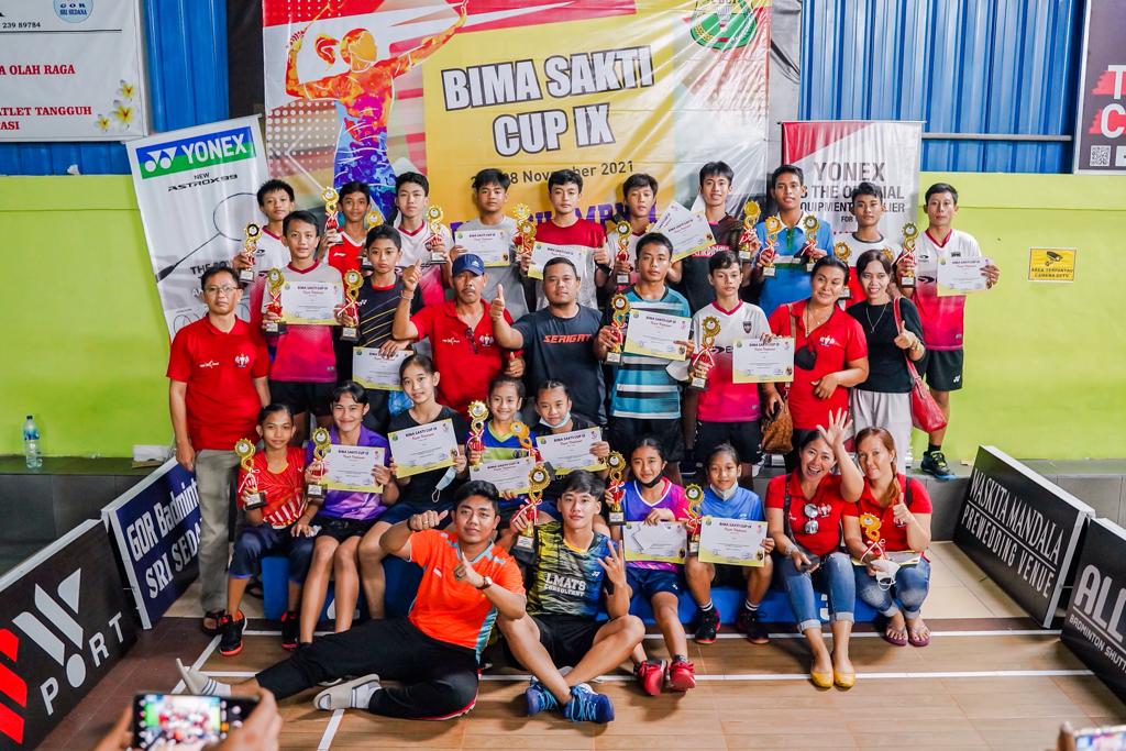 DENPASAR – Tim Bulutangkis Denpasar tampil sebagai juara umum pada ajang Turnamen Bulutangkis Kelompok Umur bertajuk ”Bima Sakti Cup IX” yang berlangsung mulai 24 sampai 28 November 2021, di GOR Sri Sedana, Abianbase Buduk, Kabupaten Badung.