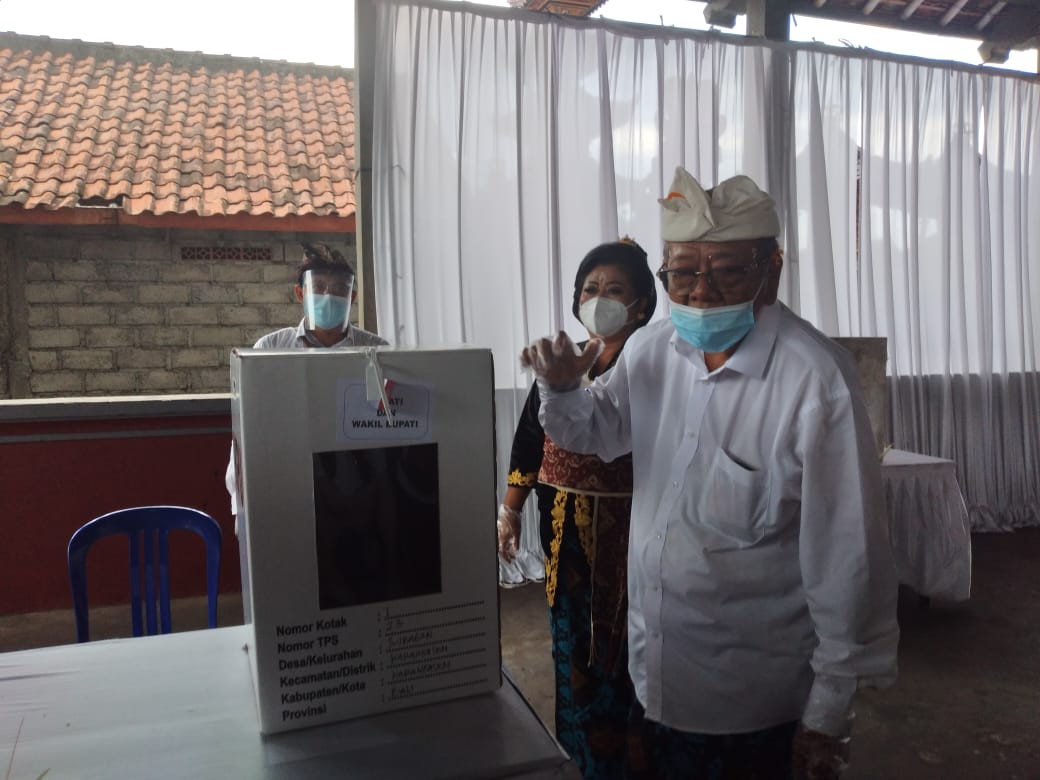 KARANGASEM – Suara paslon Massker drop di markas tim pemenangannya sendiri, yakni di TPS 3 Banjar Kreteg, Desa Sibetan, Kecamatan Bebandem, Karangasem. Untuk diketahui, di TPS ini tempat tim pemenangan Massker yaitu I Wayan Geredeg, dan Ketua Tim Pemenangan I Nengah Sumardi menyalurkan hak suaranya.