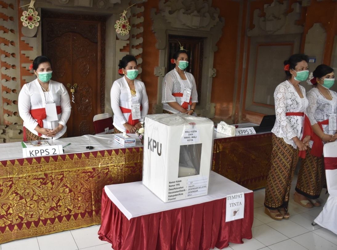 DENPASAR – Pilkada 2020 pada Rabu (9/12/2020) menghadirkan sejumlah cerita unik dan menarik, salah satunya di TPS 17 Banjar Kerta Sari, Kelurahan Panjer, Denpasar. Semua anggota Kelompok Penyelenggara Pemungutan Suara (KPPS) terdiri kaum perempuan. Selain itu, saksi pasangan calon (paslon) dan polisi yang pengamanan juga melibatkan kaum perempuan.