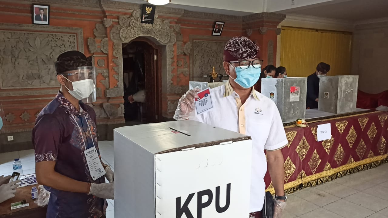 MANGUPURA – Proses pencoblosan Pilkada Badung berjalan kondusif di sejumlah TPS, Rabu (9/12/2020). Dari pantauan sejumlah TPS di wilayah Kuta dan Kuta Selatan, penggunaan hak pilih berlangsung tertib dan disiplin menerapkan protokol kesehatan (prokes).